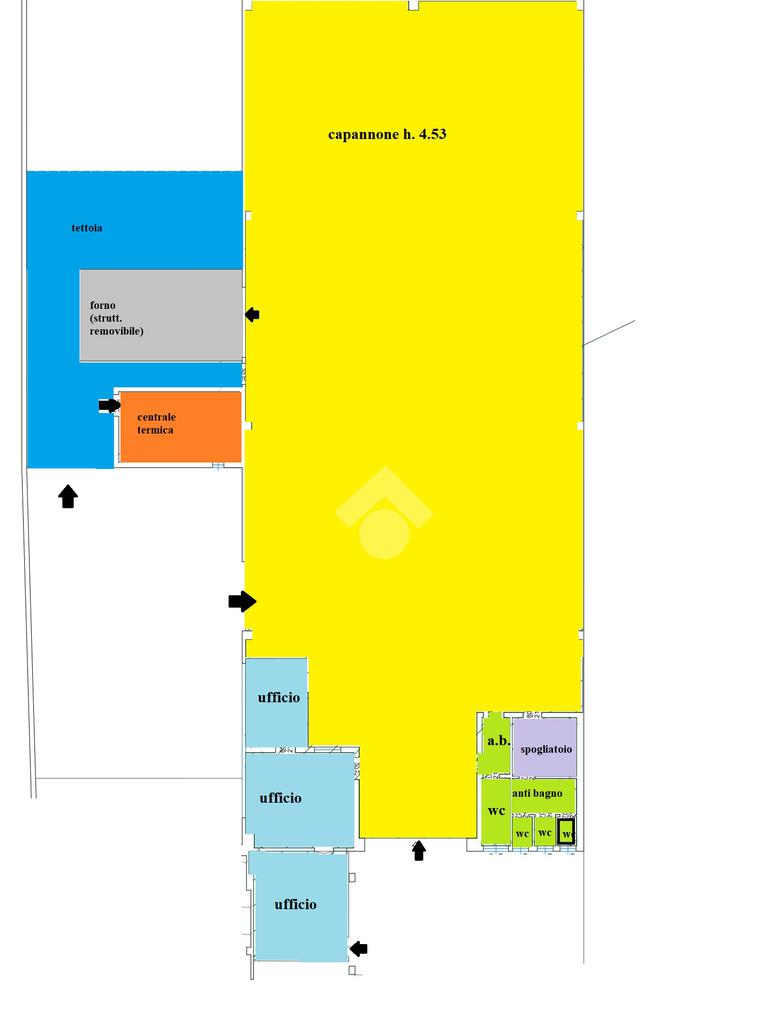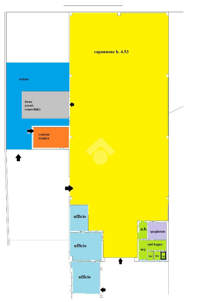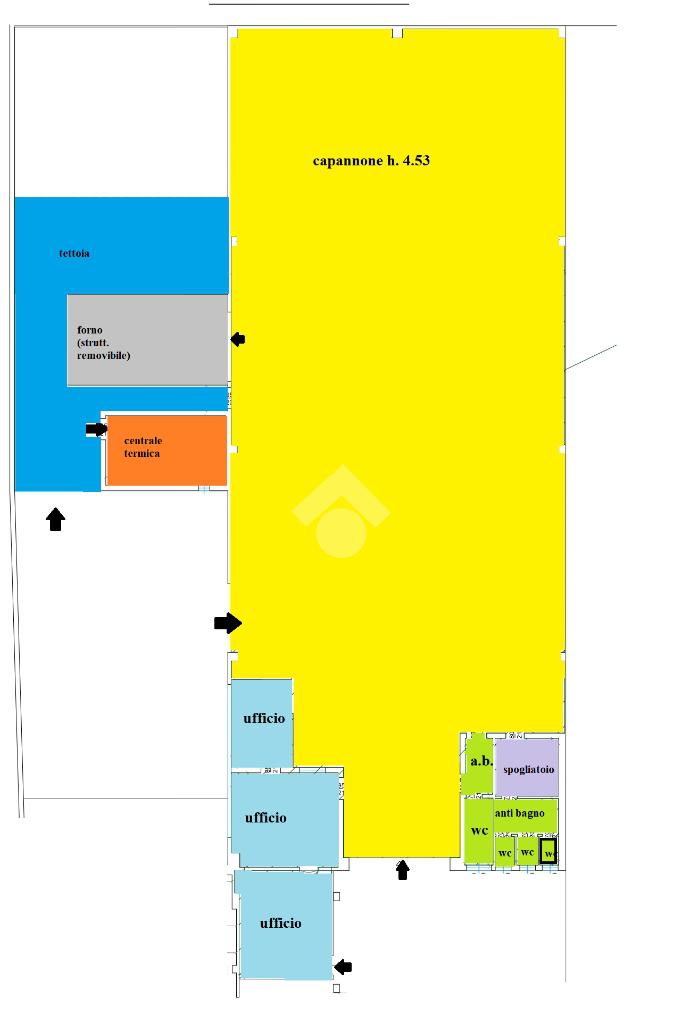 Composto da locale principale con accesso da cortile di proprietà, tre uffici climatizzato, forno per carrozzeria in struttura removibile, quattro bagni con antibagno, locale spogliatoio e locale centrale termica.