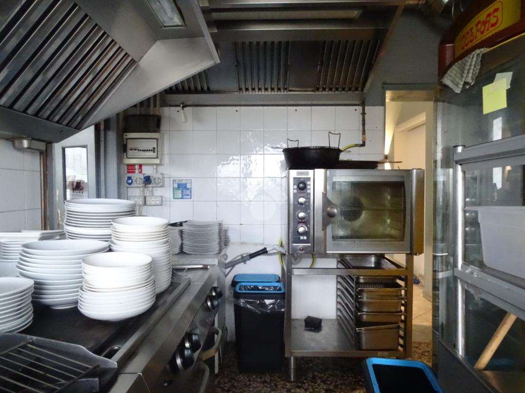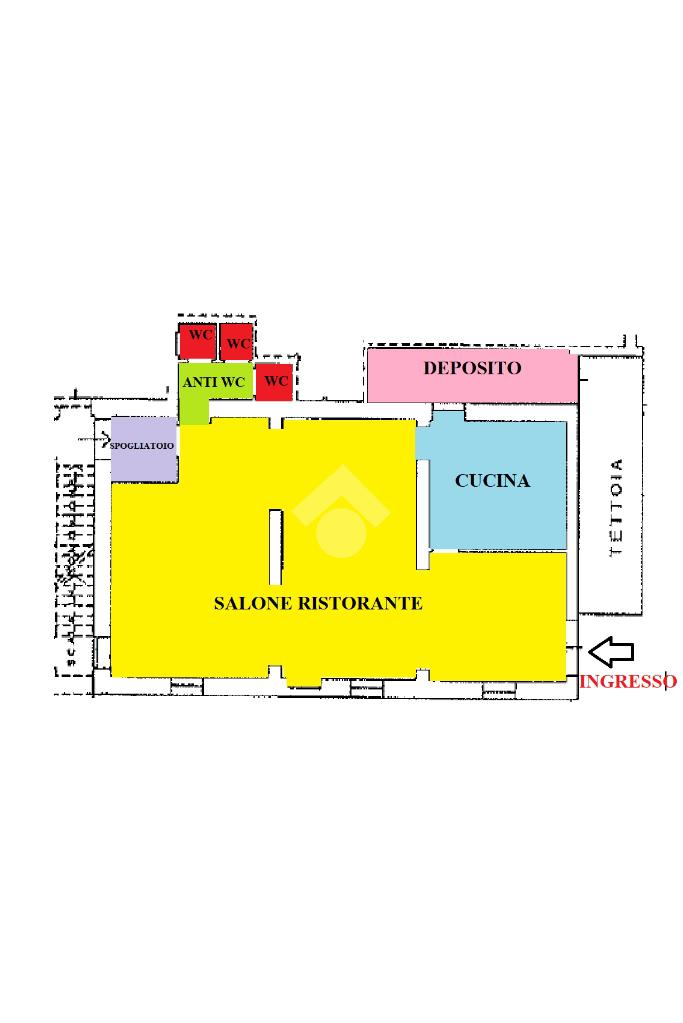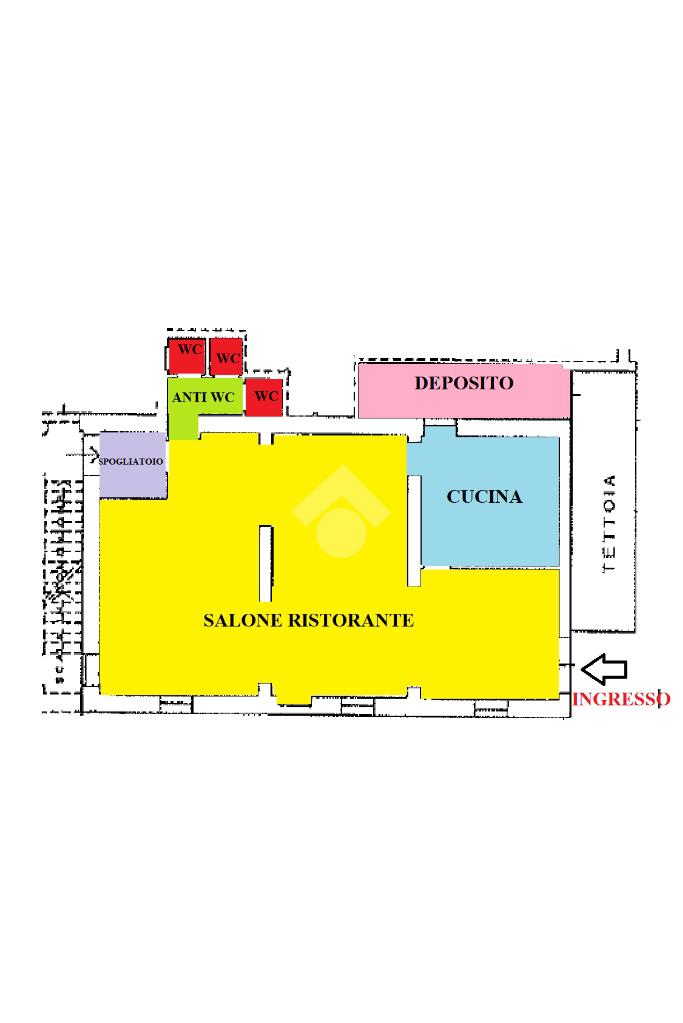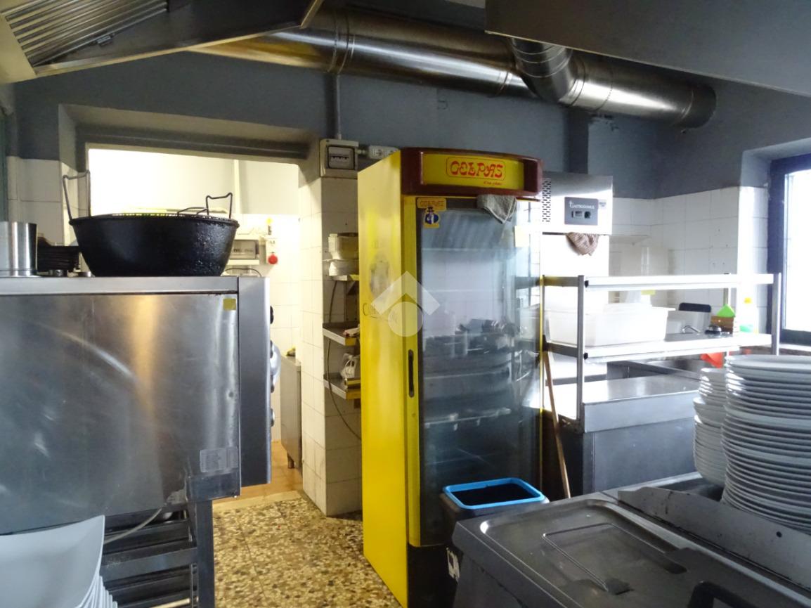 L'immobile, con cucina e locale uso deposito piastrellati, è in ottime condizioni. E' fornito di tre bagni con antibagno comune e locale spogliatoio, riscaldamento autonomo e impianto di climatizzazione nella sala ristorante.