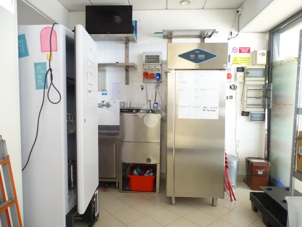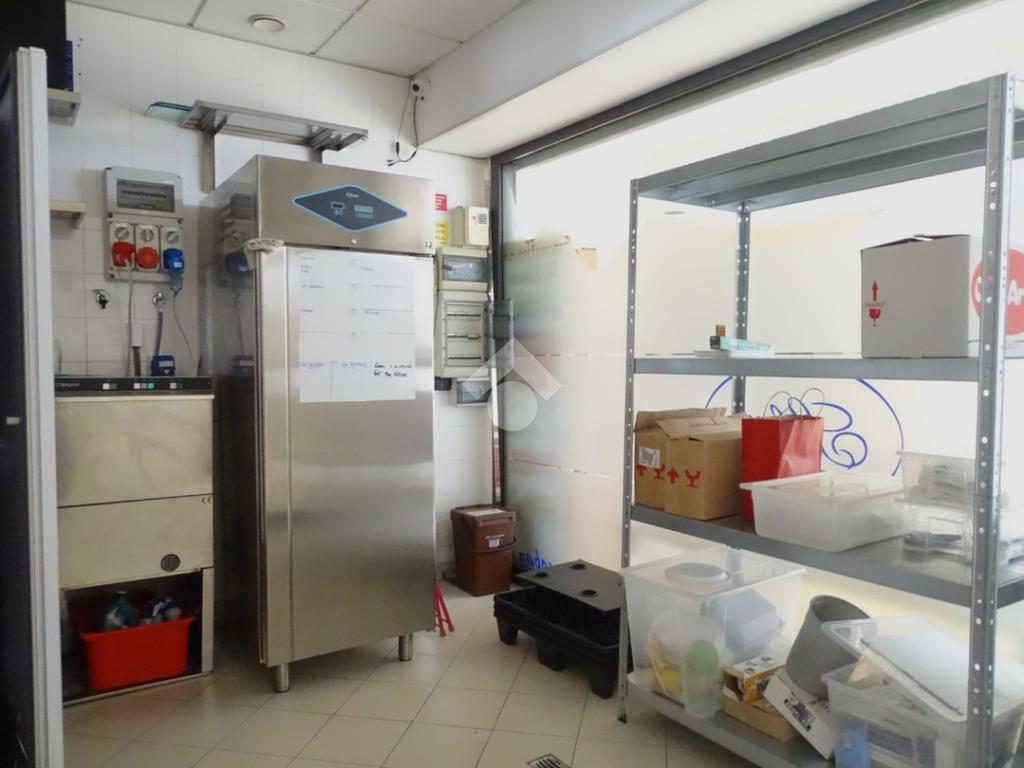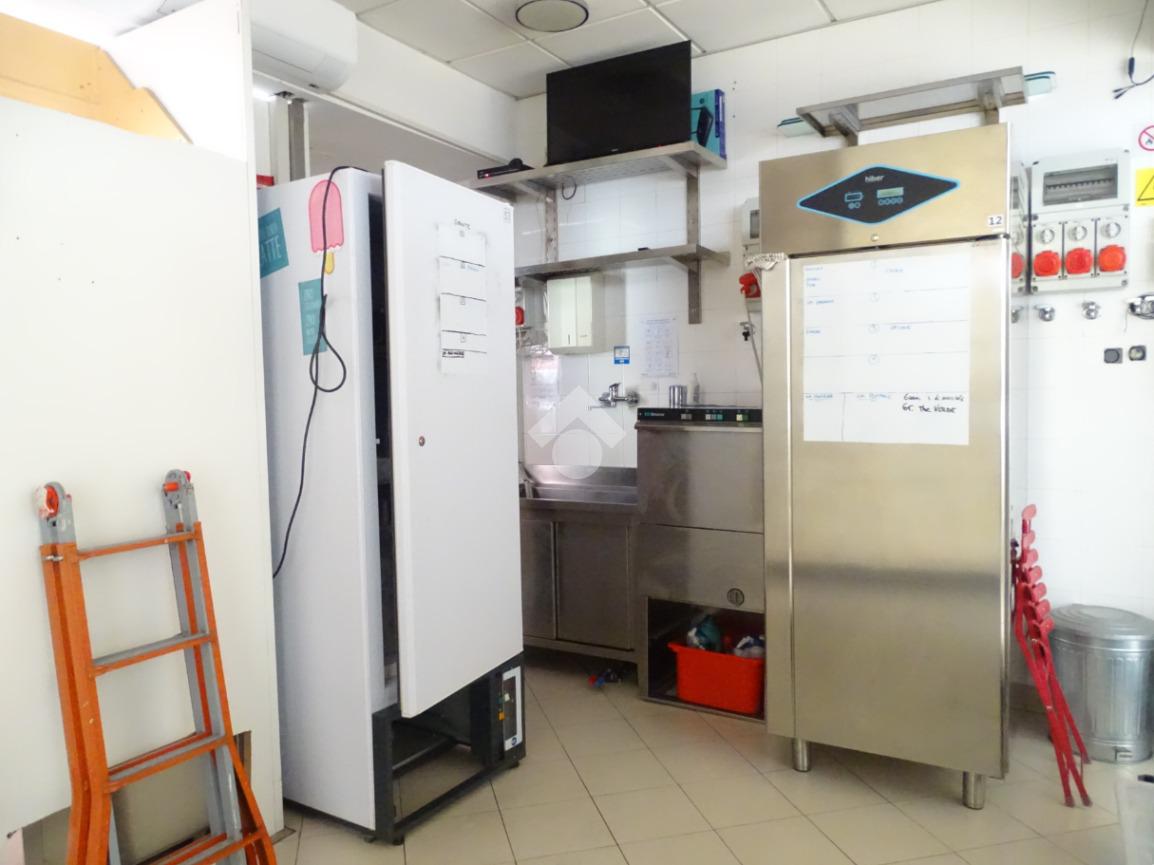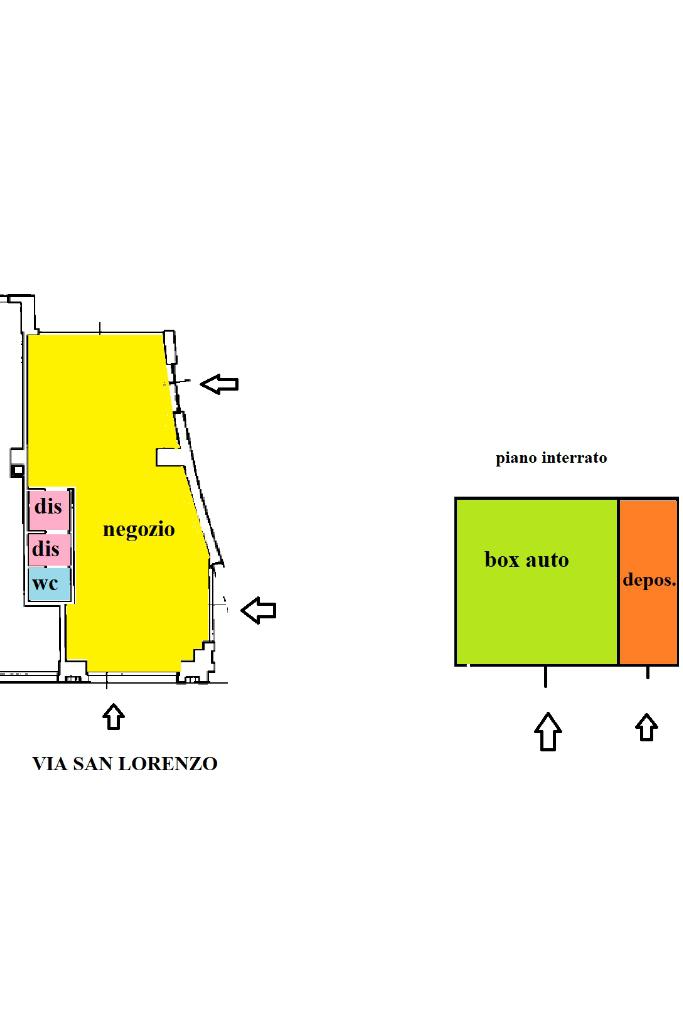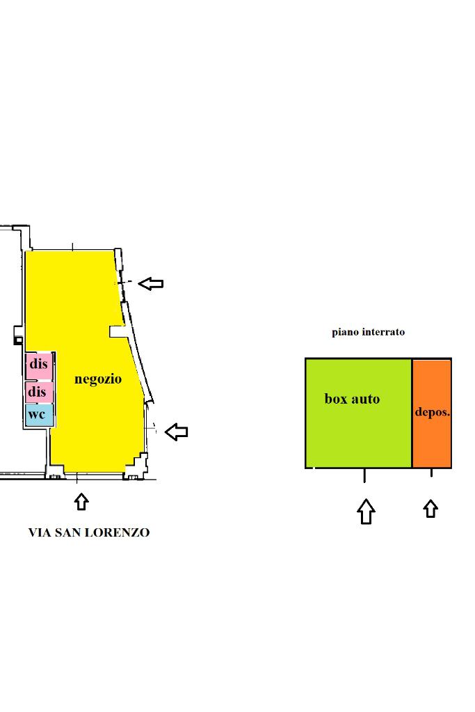 Il locale è composto da un unico luminoso ambiente in ottimo stato di manutenzione ed in parte piastrellato, idoneo quindi per attività legate all'area alimentare. E' presente impianto elettrico da 380V, impianto di videosorveglianza e oltre all'ingresso principale da Via San Lorenzo anche altri due accessi. Il riscaldamento e la climatizzazione autonomi ad aria assicurano un comfort ottimale in ogni stagione. Completano la proprietà un box auto di 25 mq, una caratteristica rara e preziosa in questa zona centrale, e un locale uso deposito idoneo per lo stoccaggio di prodotti alimentari confezionati.